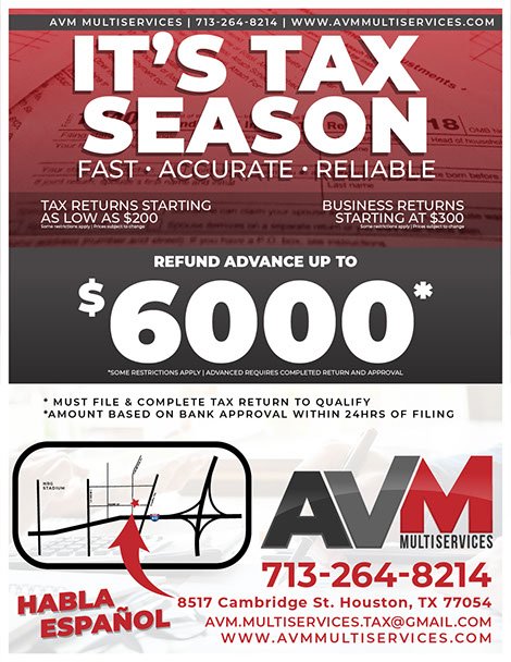Contact us today for all of your Tax and Notary Service needs! 832-986-6120 avm.multiservices.tax@gmail.com